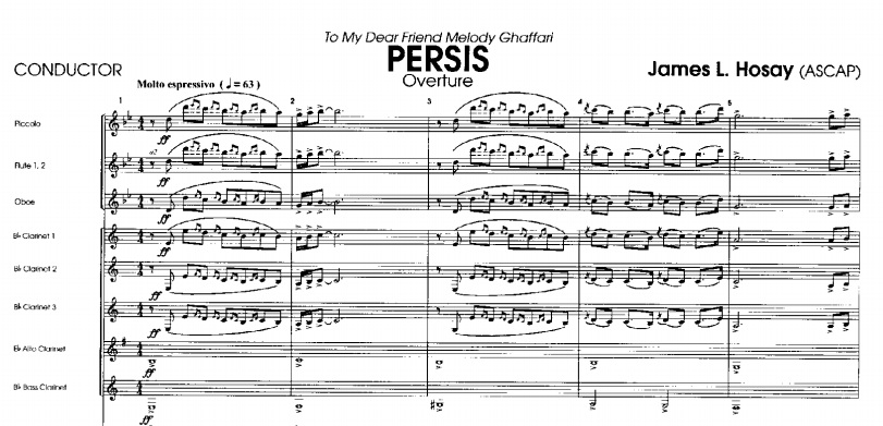 De Amerikaanse componist James L. Hosay schreef dit stuk, geïnspireerd door Perzische geschiedenis. Het stuk is uitgevoerd door verschillende harmonieorkesten over de wereld, van Japan tot de Verenigde Staten. Afgelopen week in Nederland ontving PERSIS één van de meest recente uitvoeringen.