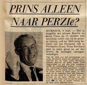 This short piece which has been published in the Dutch daily “Limburgsch Dagblad” writes that it seems the only member of Royal family of the Netherlands who will attend the celebration in Persepolis will be Prince Bernhard, the husband of the queen and father of Princess Beatrix (current queen of the Netherlands).